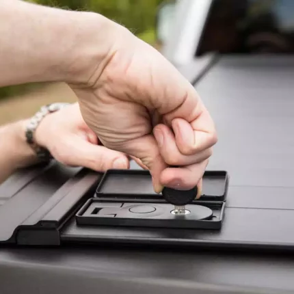 Esta tapa está construida con materiales de alta calidad como aluminio y acero inoxidable, lo que la hace resistente a la corrosión y duradera. Además, cuenta con cierres de seguridad y un sistema de bloqueo automático para asegurar la carga.