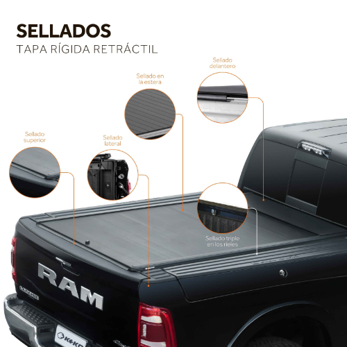 La Tapa Rígida Retráctil trae un sistema de sellado triple que protege el platón contra el ingreso del agua y polvo, proporcionando tranquilidad mientras exploras nuevas carreteras.