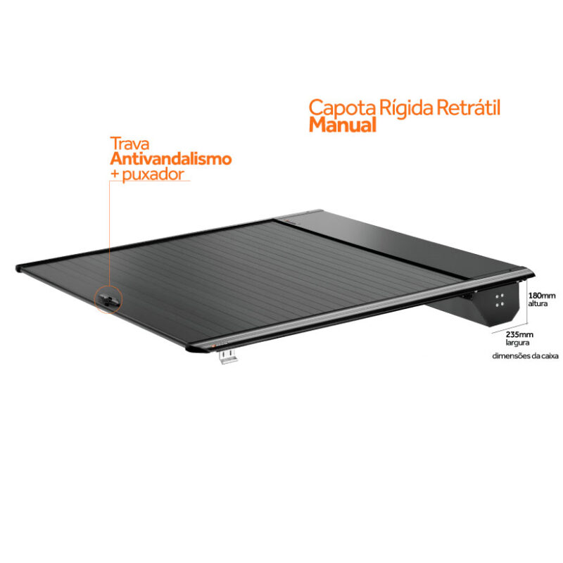 • La Tapa Retráctil Manual cuenta con la misma tecnología, robustez y diseño de la Tapa Retráctil Eléctrica. La abertura es hecha automáticamente por su sistema mecánico, para cerrar basta tirar la estera que tiene funcionamiento suave.