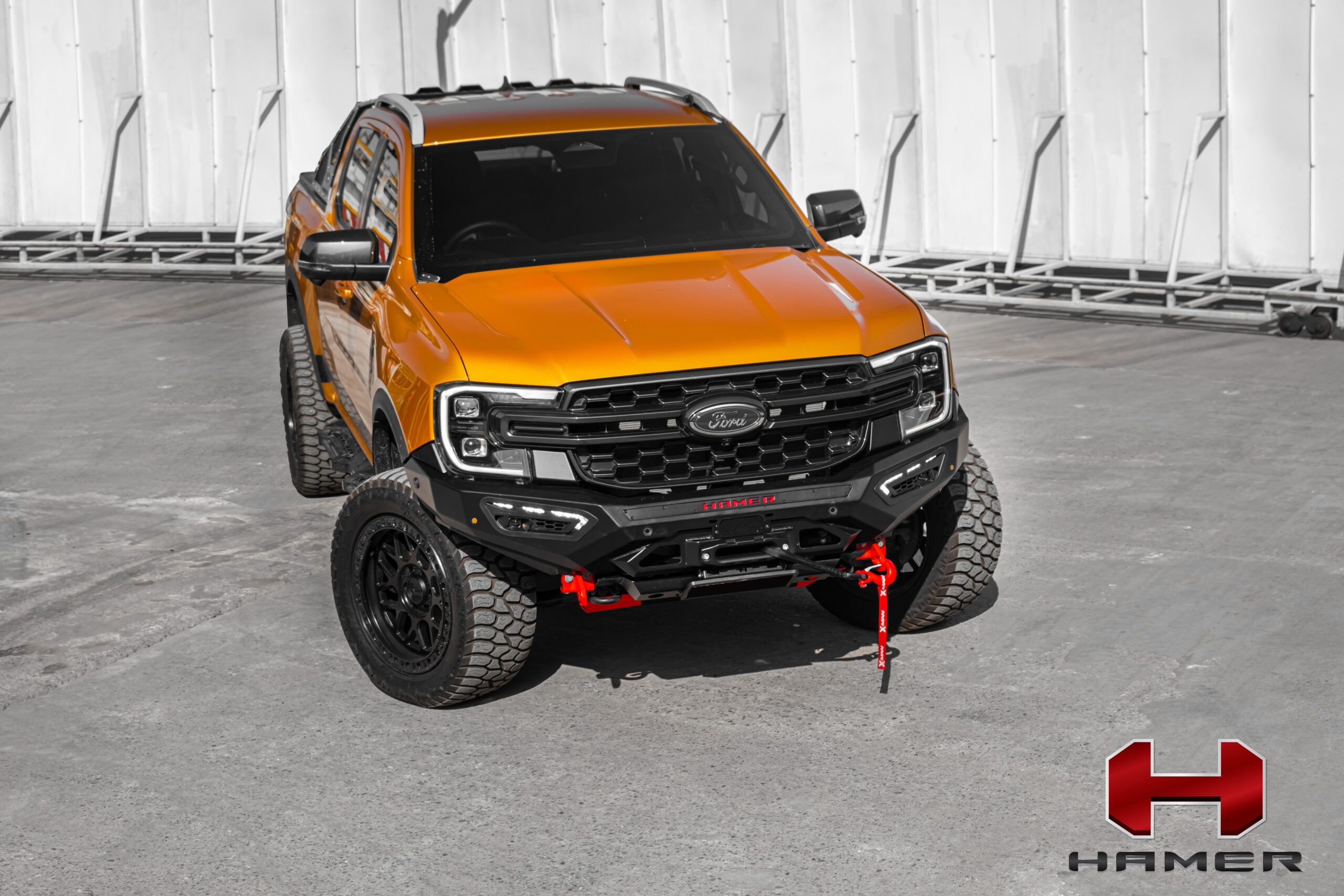 - Estética y Diseño: La Serie Atlas de parachoques Hamer se caracteriza por su diseño moderno y agresivo, con líneas robustas que realzan la apariencia del vehículo. Su estructura es sólida, diseñada para soportar impactos y ofrecer una protección óptima en condiciones exigentes, como el off-road.