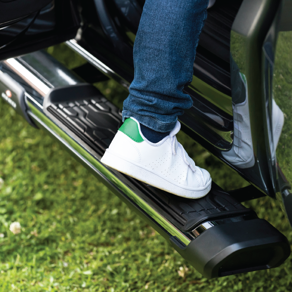 - Posee mayor área de apoyo para los pies, ofreciendo comodidad y seguridad en el acceso y descenso del vehículo.